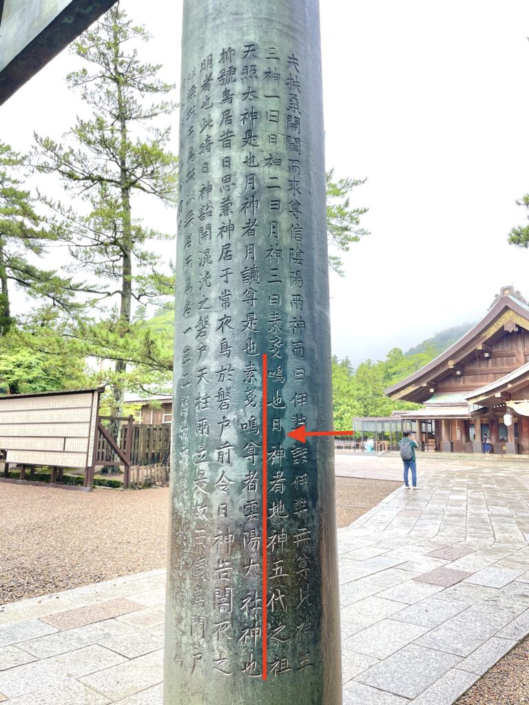 左右の柱には長文の銘文が刻まれており、近世以前の出雲大社の姿を今に伝える貴重な史料といえます。